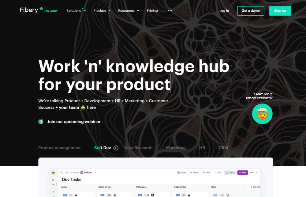 Fibery provides a tailored workspace solution that combines linked databases, detailed reports, and Artificial Intelligence features.