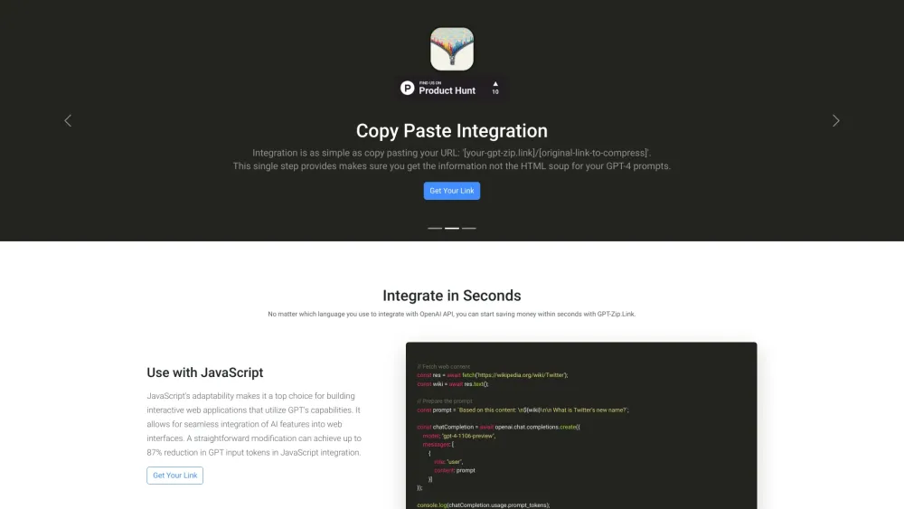 Improve website content for RAG prompts and reduce expenses with GPT-Zip.Link