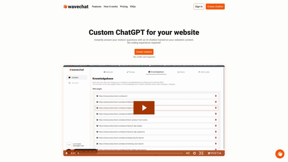 A helpful platform, Wavechat, utilizes an AI-powered chatbot to provide instant responses to visitors' queries on a website.