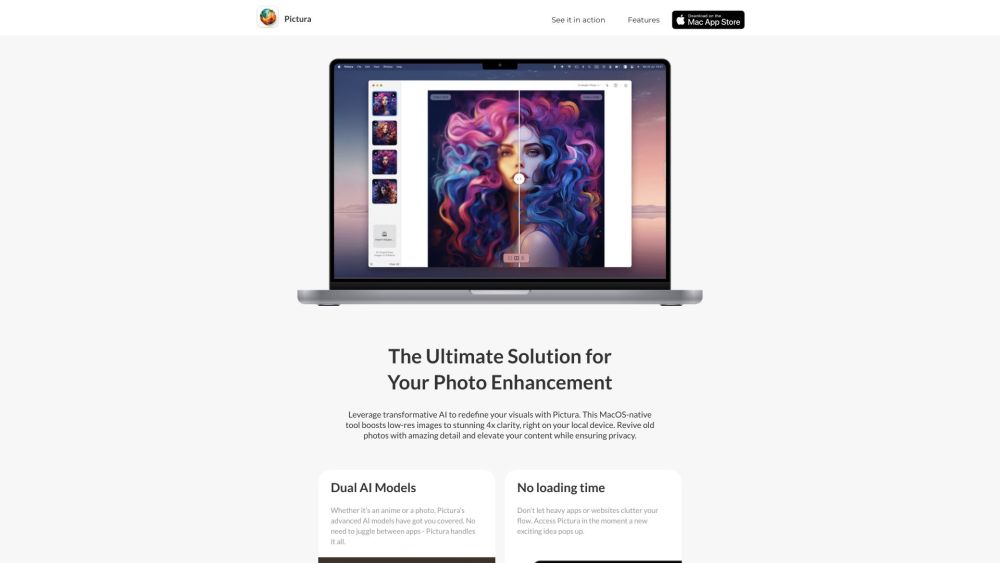 Pictura is a MacOS photo editing software that utilizes Artificial Intelligence to enhance picture quality.