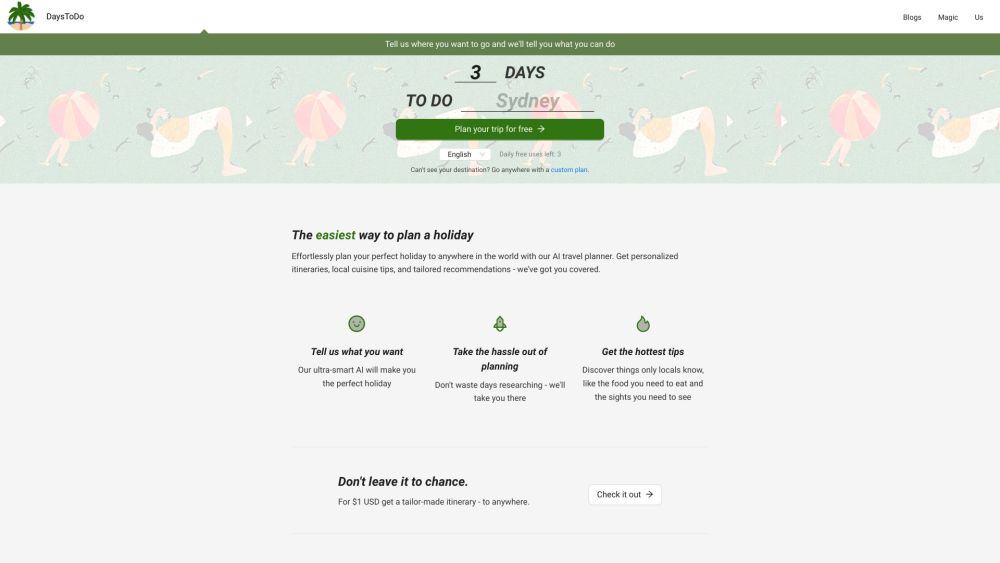 DaysToDo is a travel planning website powered by Artificial Intelligence, making global holiday planning easier.