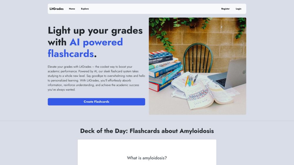 LitGrades uses AI technology to offer students a flashcard platform where they can both discover and create flashcards.