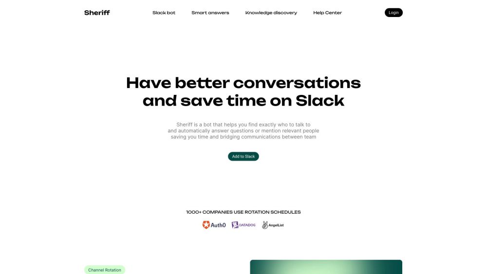 Sheriff is a Slack bot designed to save time by identifying the correct individual for conversation and providing answers.