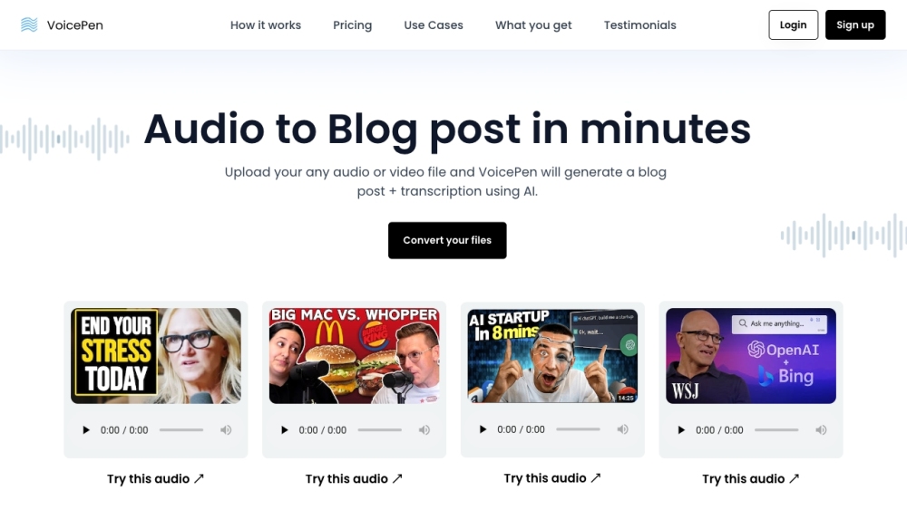 VoicePen uses AI technology to transform different kinds of media into blog posts.