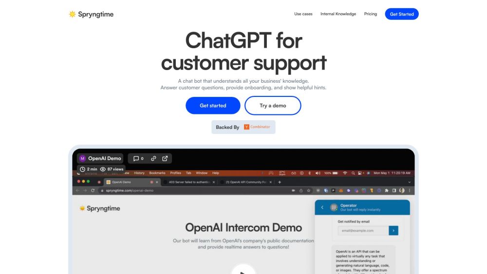 Spryngtime uses AI to automate customer support, offering instant replies and completing tasks efficiently with the help of ChatGPT.