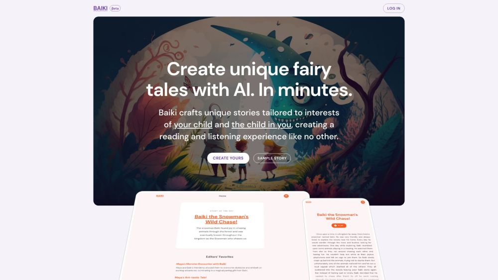 A magical storytelling app delivers customized fairy tales to both kids and grown-ups via captivating narratives.