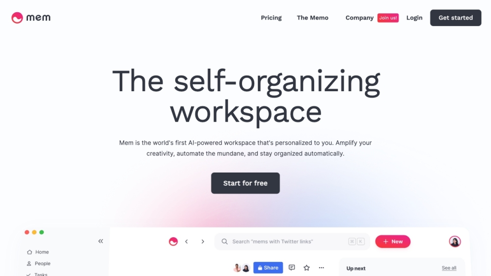 Mem is a productivity platform powered by Artificial Intelligence that assists in streamlining team collaboration.