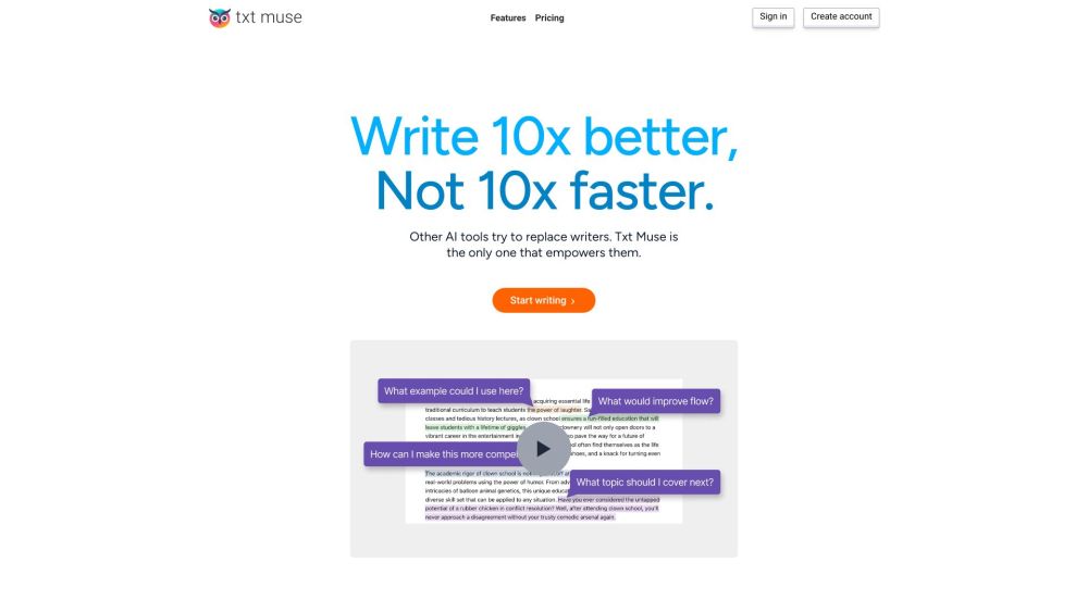 Txt Muse is a writing tool that uses AI to improve the quality of written content with its advanced features.