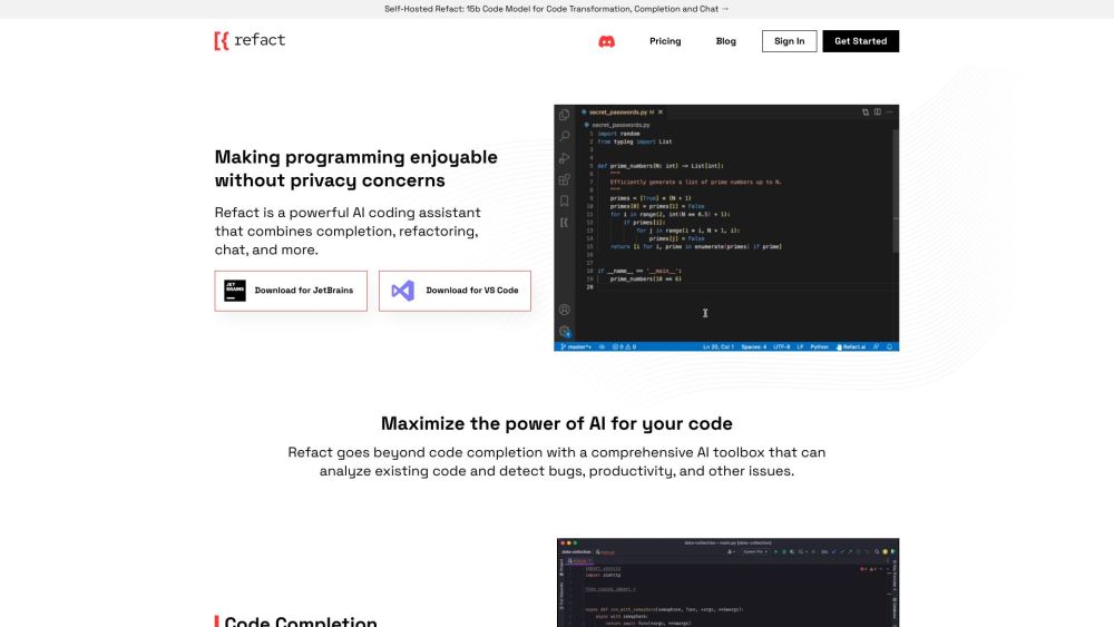 Refact.ai is an advanced AI coding tool designed to improve code analysis, completion, and overall coding efficiency.