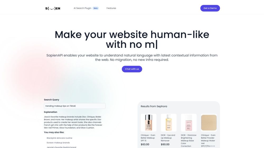 SapienAPI allows websites to comprehend human language naturally and enhance customer experience instantly.