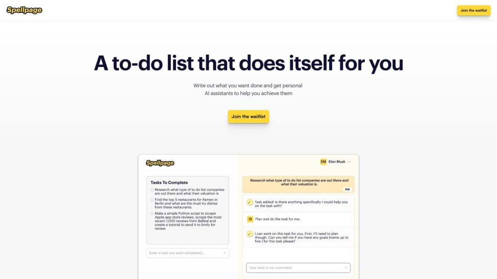 Spellpage is an AI-driven task list that assists users in finishing tasks with ease.