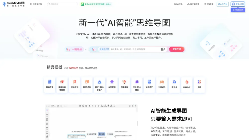 Artificial Intelligence tool for TreeMind, displaying ideas and thoughts visually.