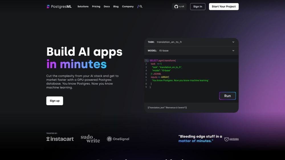 Quick, easy-to-use, and robust PostgresML platform for AI operations.
