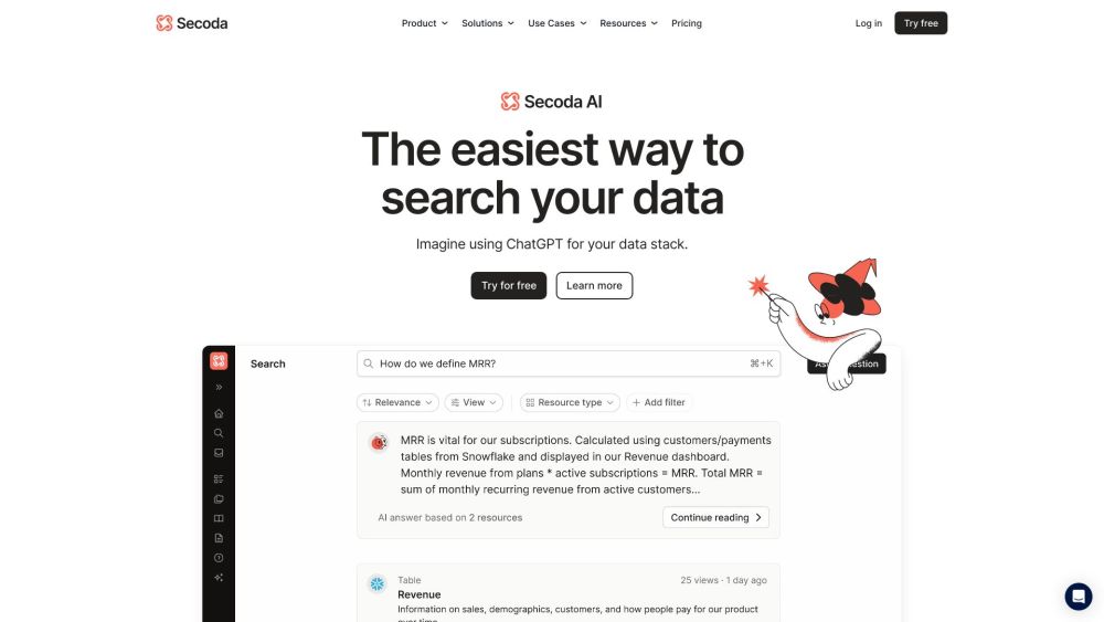 Secoda is a platform powered by Artificial Intelligence for managing and utilizing data efficiently.