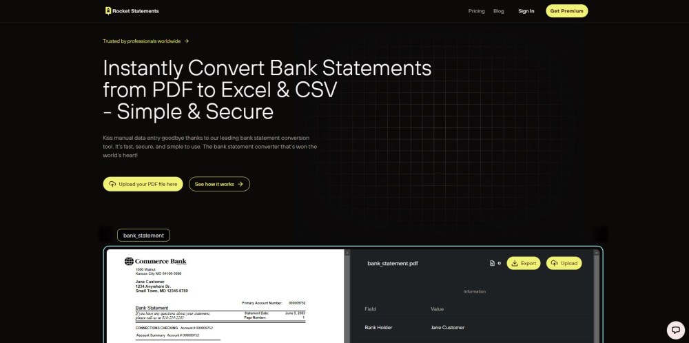 Transform PDF bank statements into editable Excel, CSV, or JSON formats.