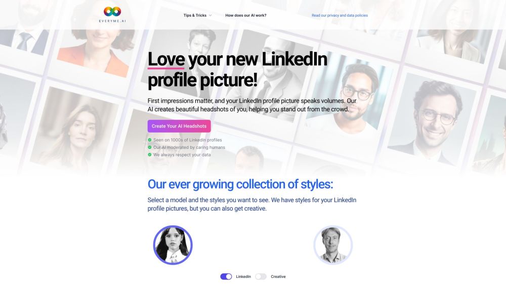 Capture impressive LinkedIn profile pictures using Everyme.ai's advanced Artificial Intelligence technology to make a lasting initial impression.