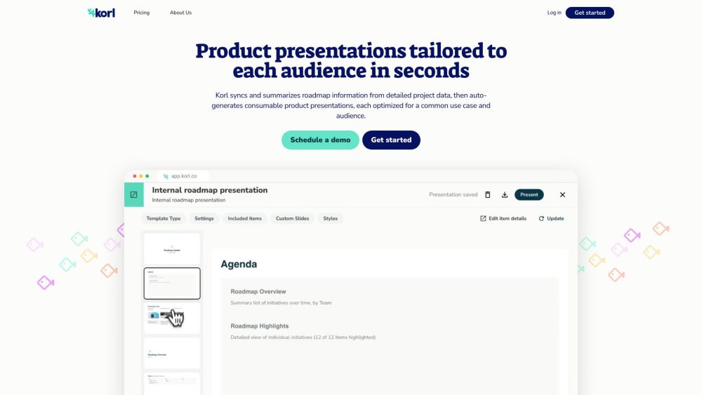 Combine and summarize roadmap data, automatically create customized product presentations.