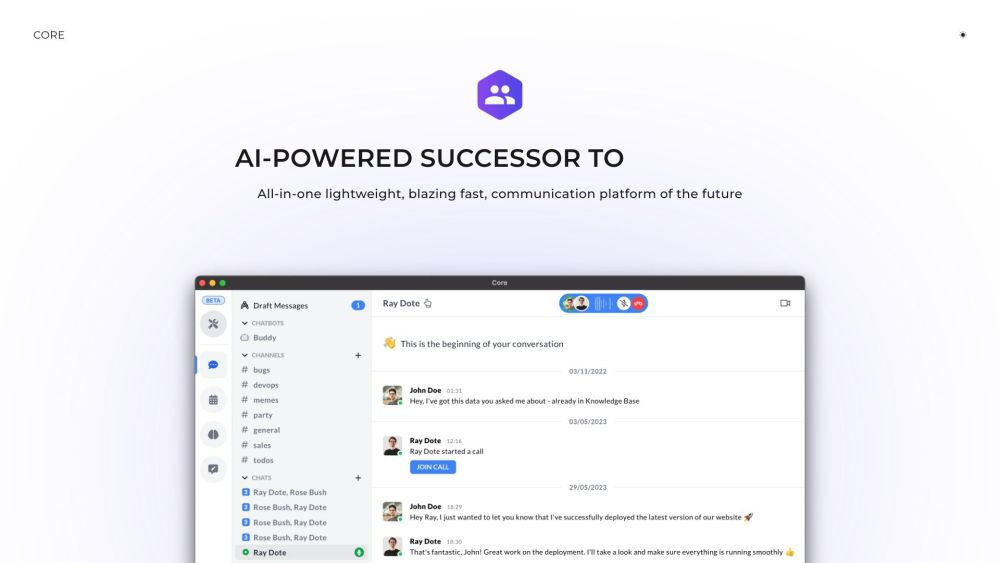 Core is a highly efficient communication platform powered by AI, specifically designed for small teams, offering simplified features.