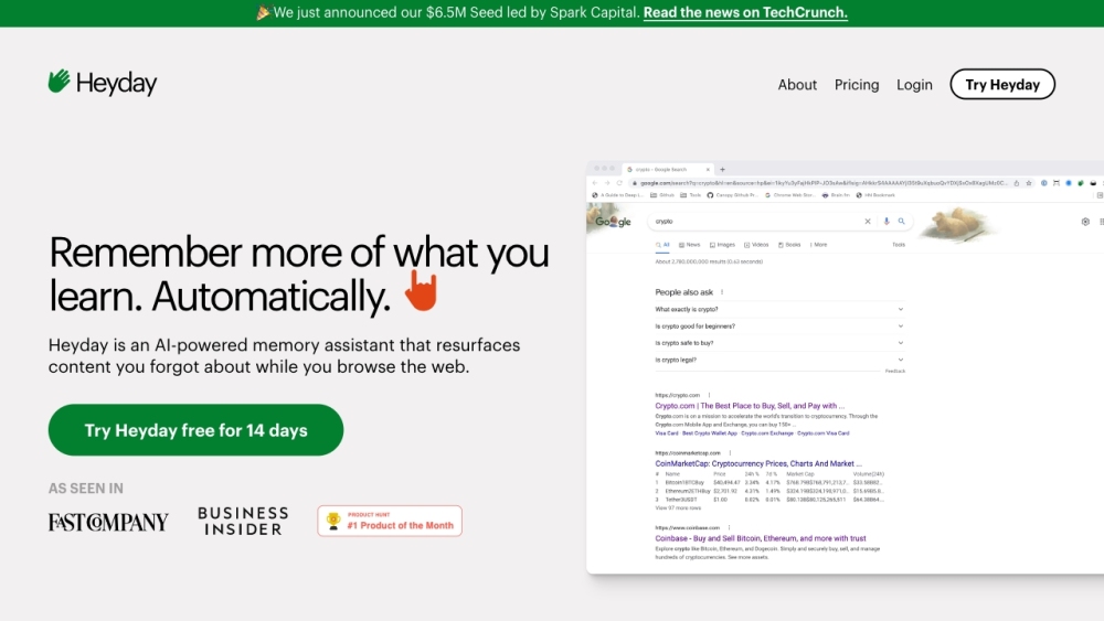 Heyday assists users in recalling and arranging information with the help of AI-driven memory aid.