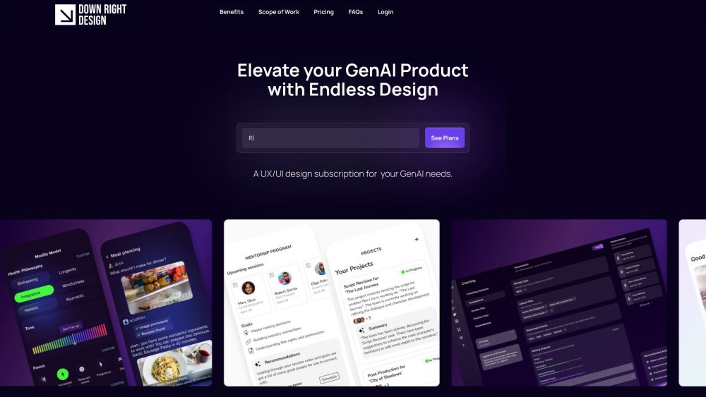 Monthly subscription plans for User Experience and User Interface design tailored to Generative Artificial Intelligence startup companies.