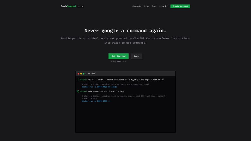 BashSenpai is a computer terminal helper that uses AI technology, specifically ChatGPT, to provide instant commands and answers based on the situation.