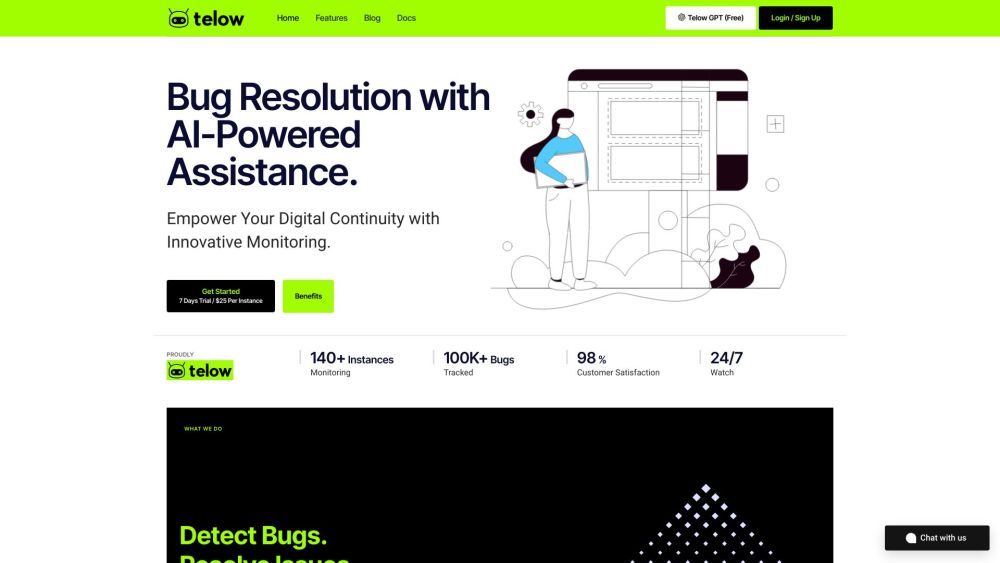 An advanced AI-driven solution for identifying and resolving software bugs, plus monitoring.
