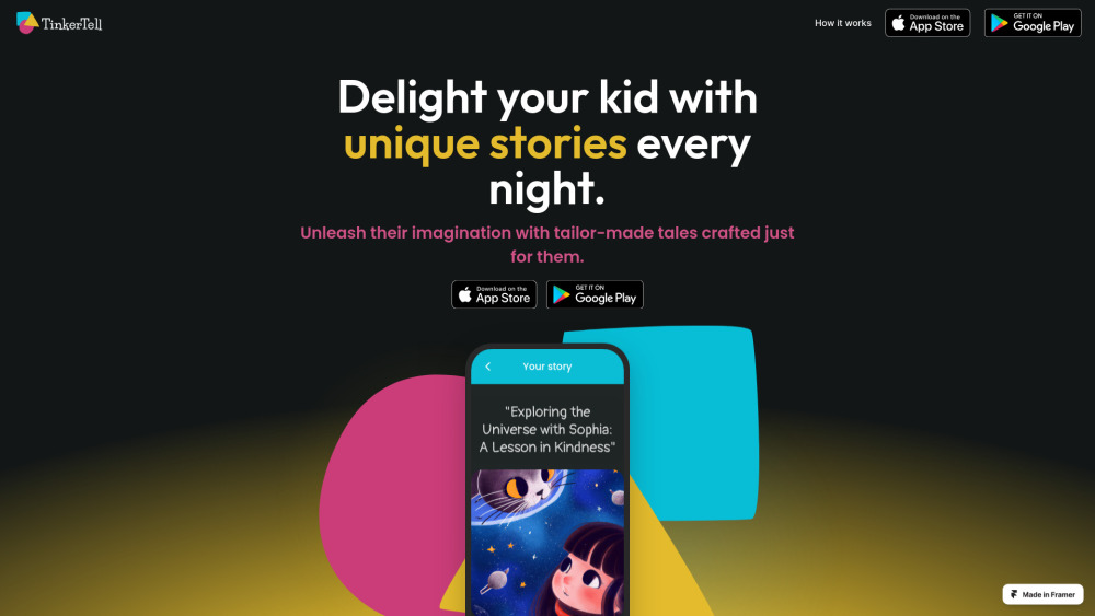 A website provides interactive AI-driven adventure stories for children, allowing them to design their own exciting experiences.