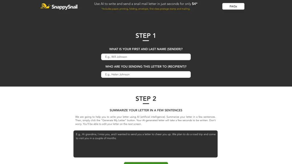 Save time by utilizing Artificial Intelligence to compose and dispatch handwritten letters instantly.