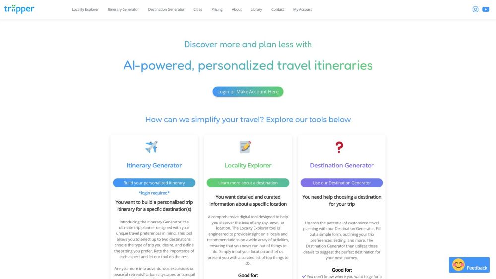 Triipper is a travel planner powered by Artificial Intelligence that designs customized travel plans for a hassle-free and memorable trip.
