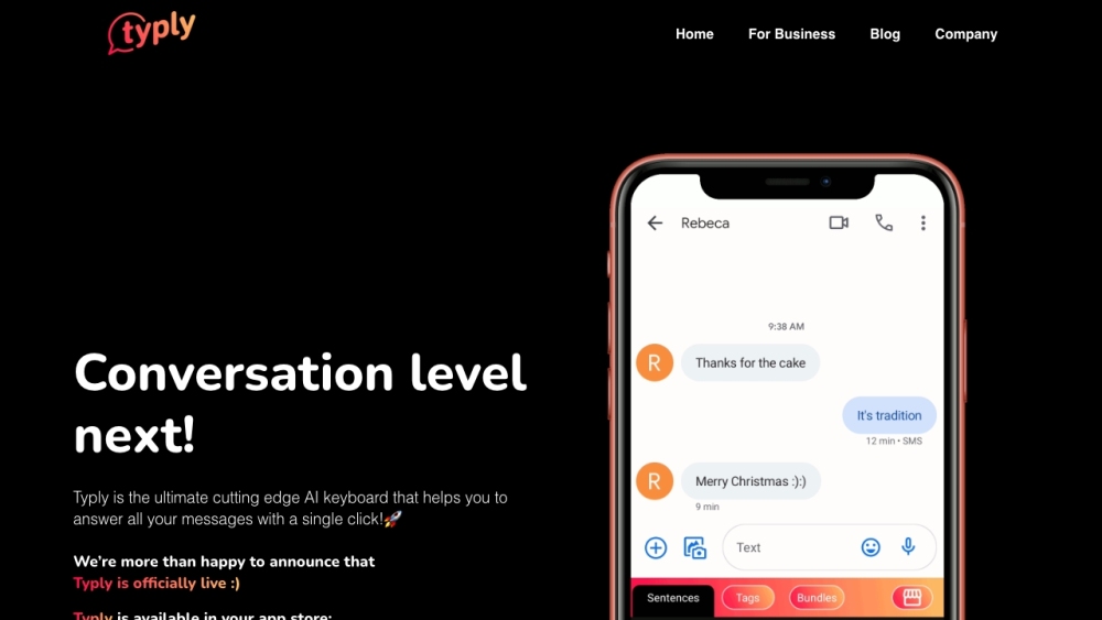 Typly is a smart keyboard that uses AI to recommend automatic sentences, making messaging fast and easy.