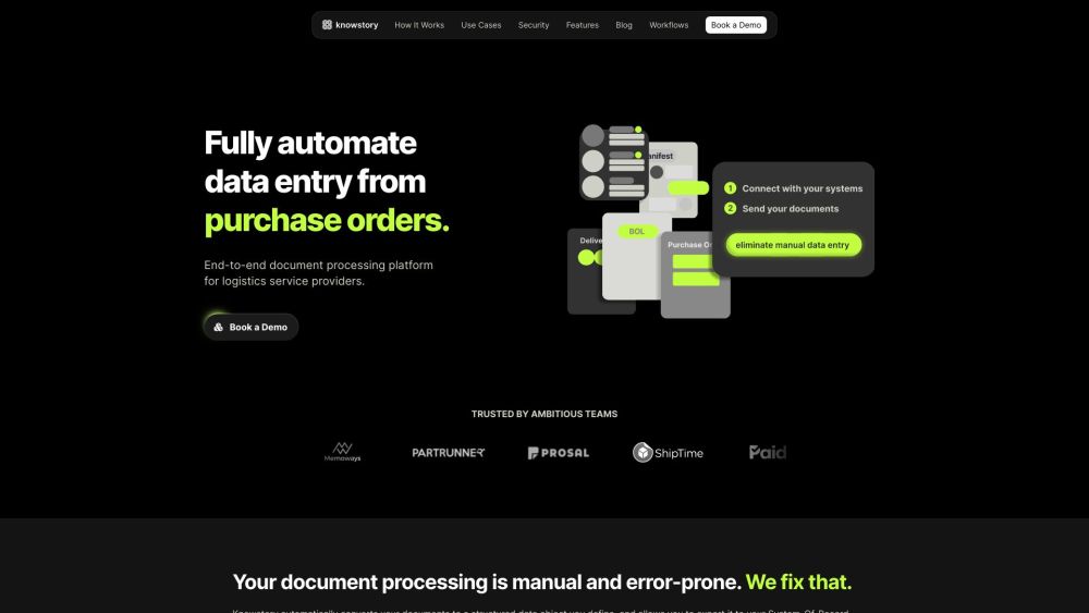 Use Knowstory to automate data entry and extraction from logistics documents.