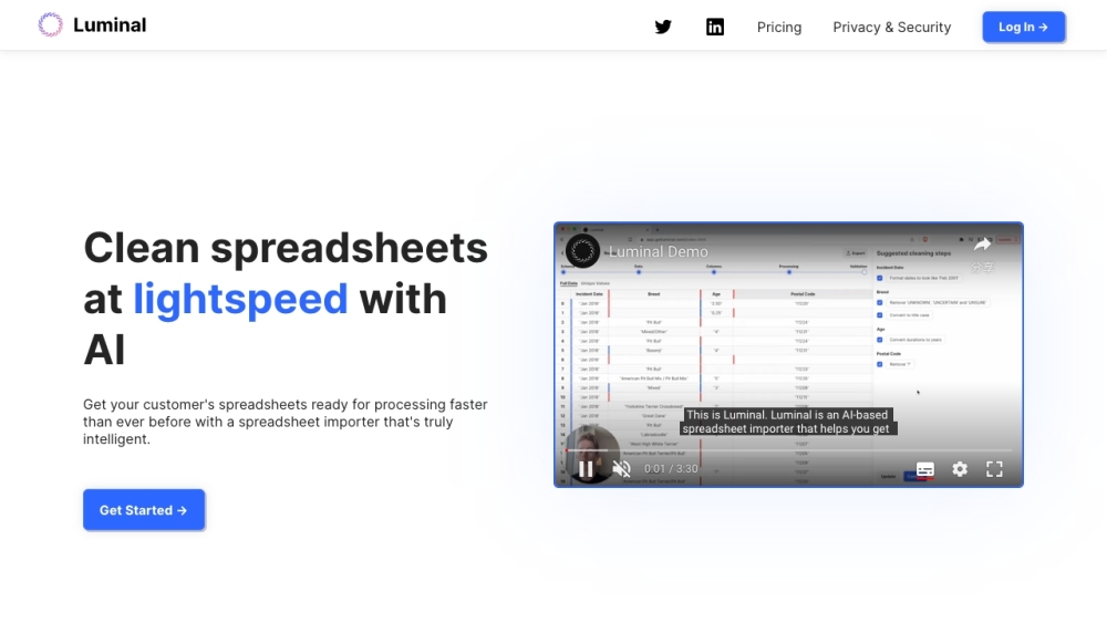 A highly advanced AI assistant, Luminal facilitates rapid spreadsheet cleaning, conversion, and examination processes.