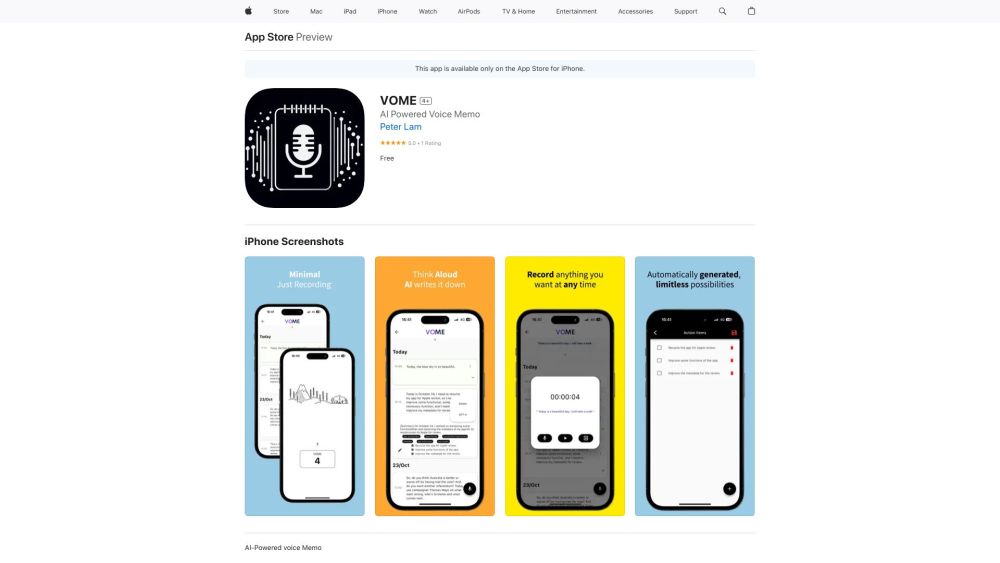 A voice memo app powered by AI technology features smooth voice-to-text transcription.