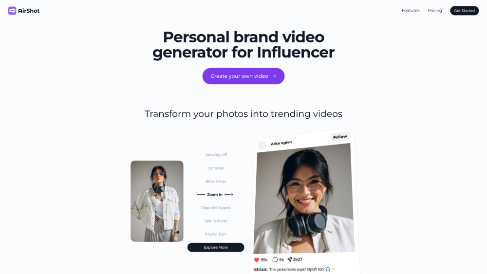 Make your own personal brand videos with templates created by Artificial Intelligence.