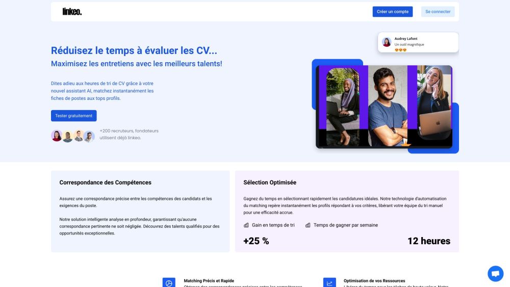 Streamline your hiring process with Linkeo's AI-powered CV screening and matching assistant, allowing recruiters to save valuable time and concentrate on in-depth interviews.